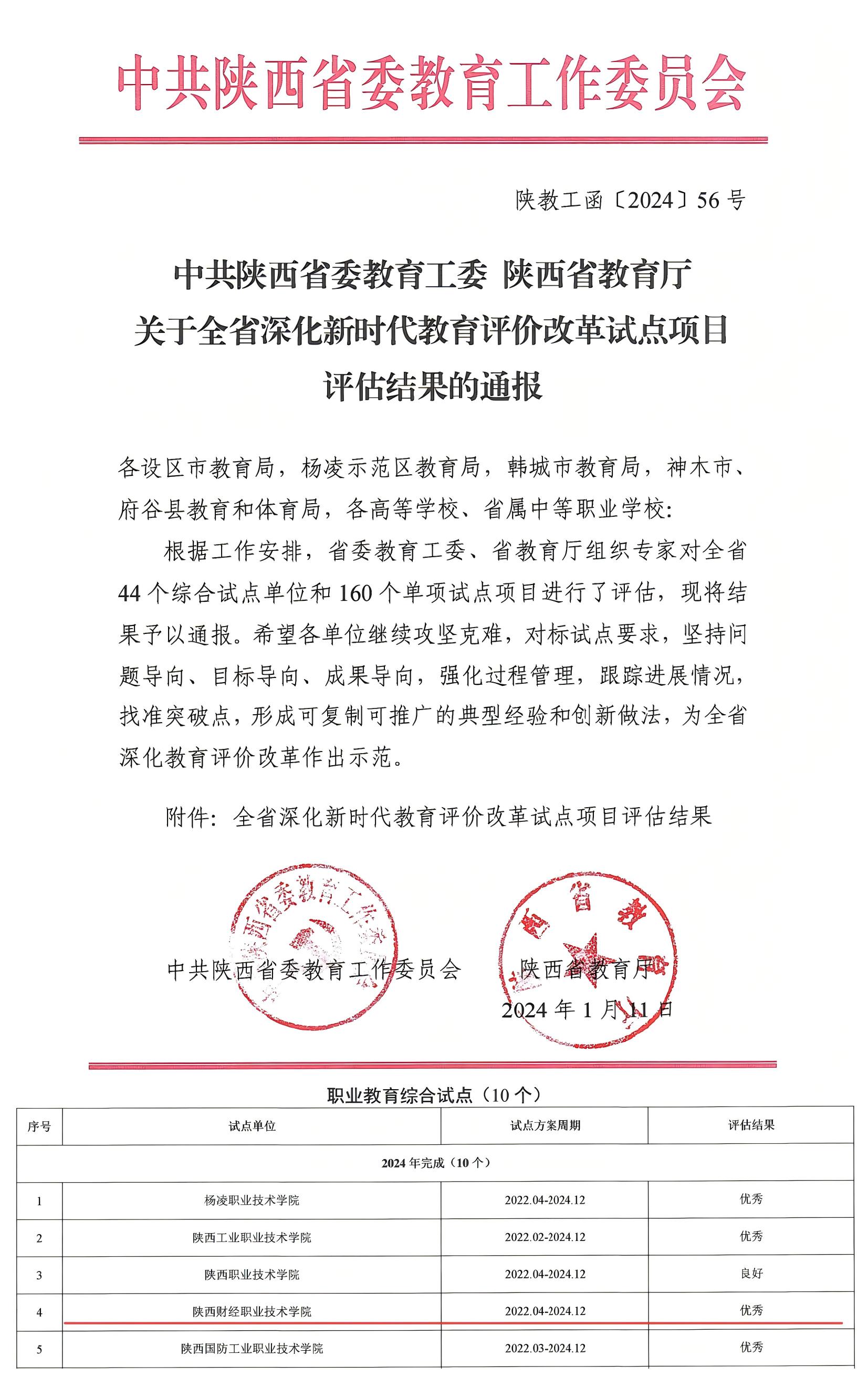 陕西省教育评价改革综合试点单位验收结果文件