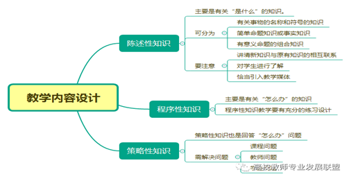 从教学设计角度考虑,一般将知识分为三类:陈述性知识、程序性知识和策略性知识。